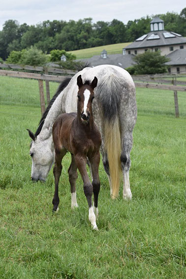 Elfentanz is also the dam of Haddad's outstanding broodmare, RAUREIF (Ramiros Bube x De Niro x Figaro). Raureif traveled to the USA with Haddad in 2012. In the USA, her first two foals by Don Principe (Donnerhall x Prince Thatch), Damaskus and Doubletake, were winners of their classes at Hilltop's Hanoverian Foal Presentations in 2014 and 2015. They were surpassed by two foals from Vitalis and two foals from Sir Donnerhall.
